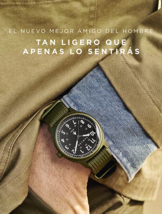 Correa NATO, movimiento Seiko, cristal de zafiro abovedado, manecillas y numerales Super-LumiNova y caja de aluminio ligero.