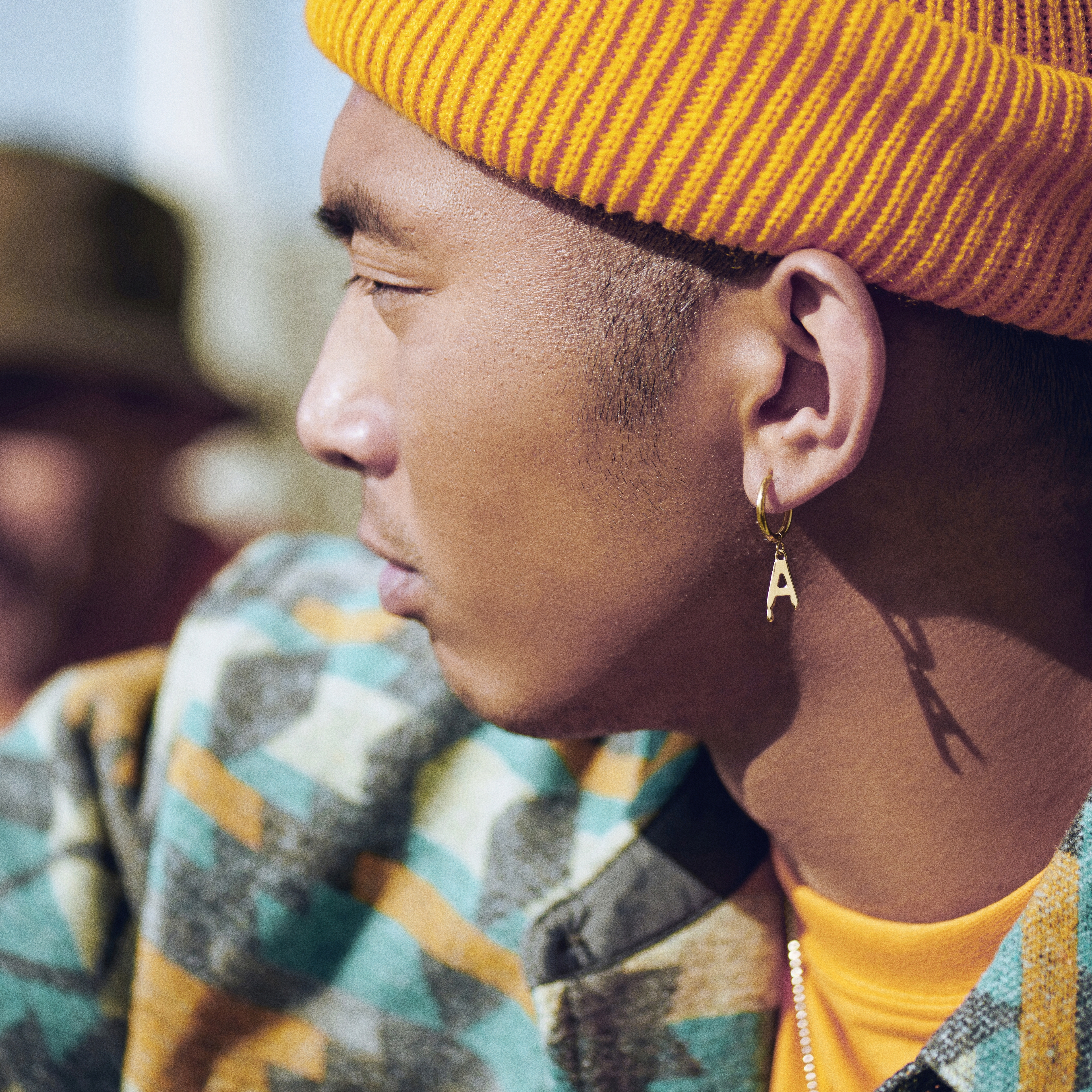 Fahrenheit | Pendiente de aro con colgante de A fundida dorado