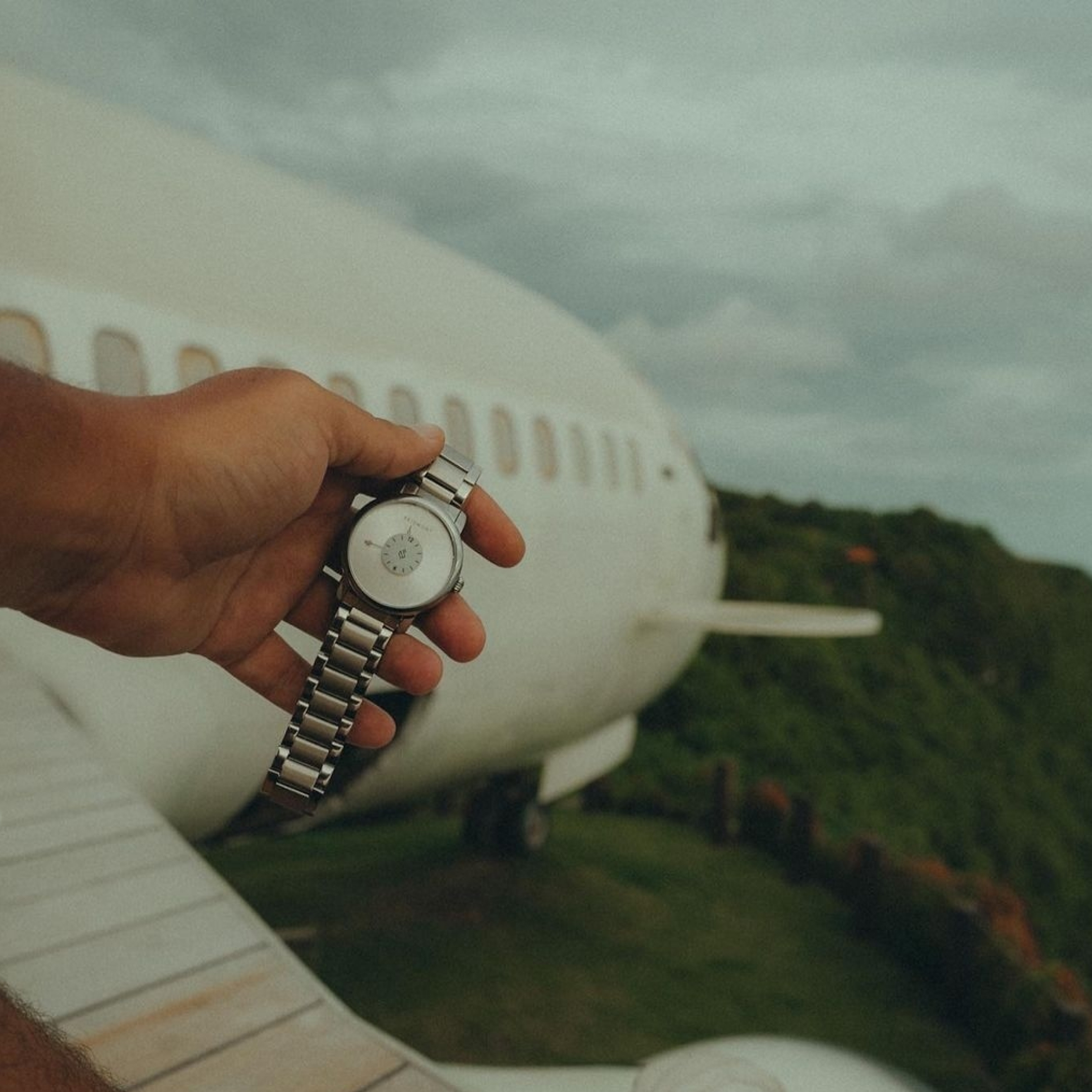 Ternion | Reloj con doble huso horario de acero inoxidable en plateado y crema