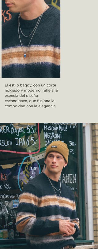 Las pulseras, anillos y collares de acero quirúrgico resistente al agua son unos complementos fáciles de usar con el estilo baggy.