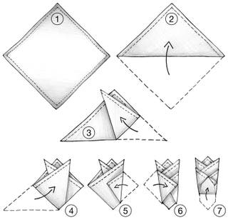 - Extiende el pañuelo de bolsillo sobre una superficie lisa.