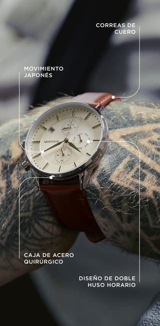 Con fecha, día de la semana, esfera de 24 horas y una subesfera para otra zona horaria.
